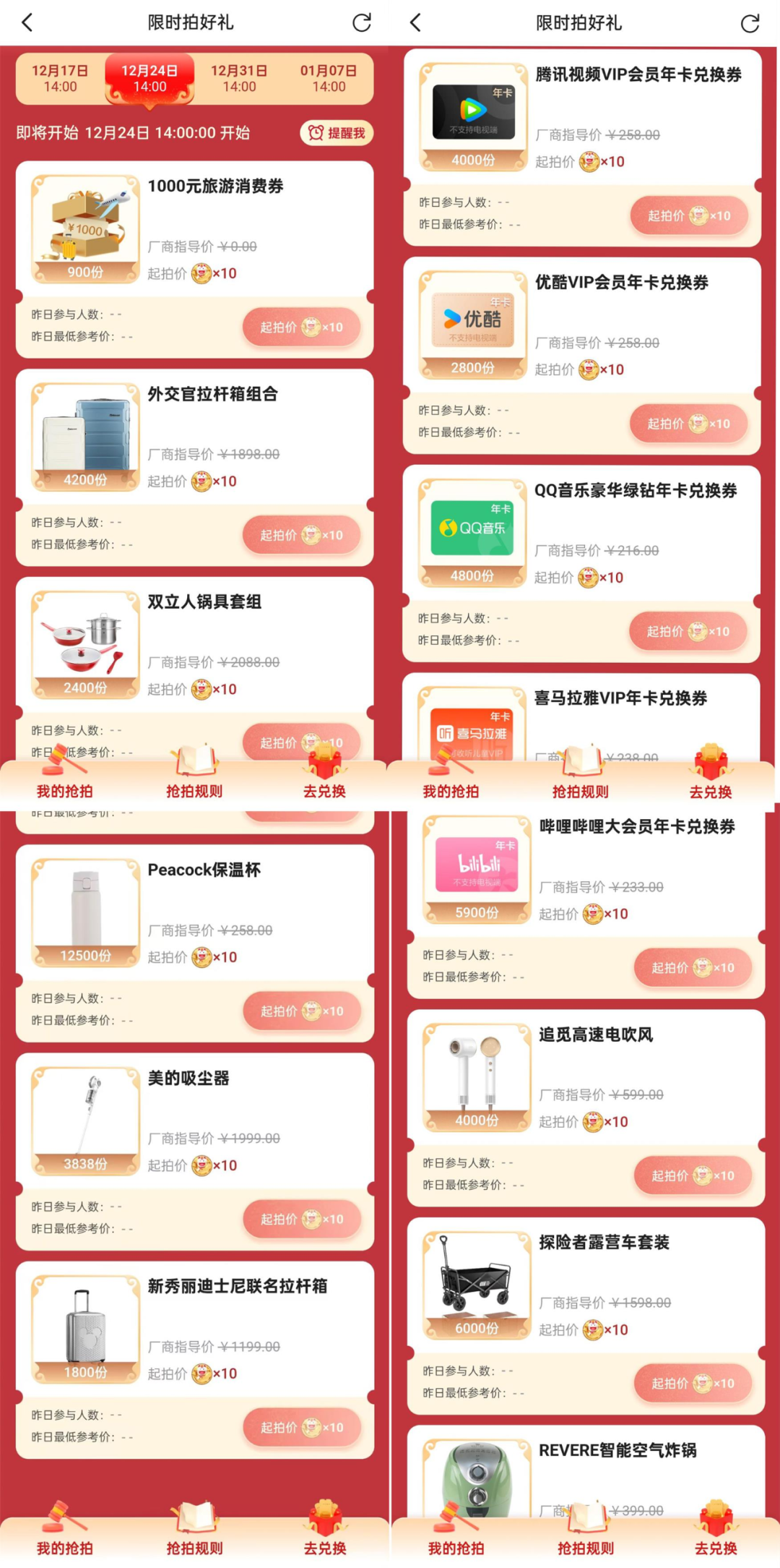 - 关于大家都关心的礼品小编扫了眼后发现还是有很多好东西的...其中实物礼品还是那几样最受欢迎的熟面孔,拉杆箱,露营车,锅具,吹风机等等。其中虚拟商品也比较多,除了旅游消费券还有5000信用卡积分、视听平台会员年卡等礼品。
