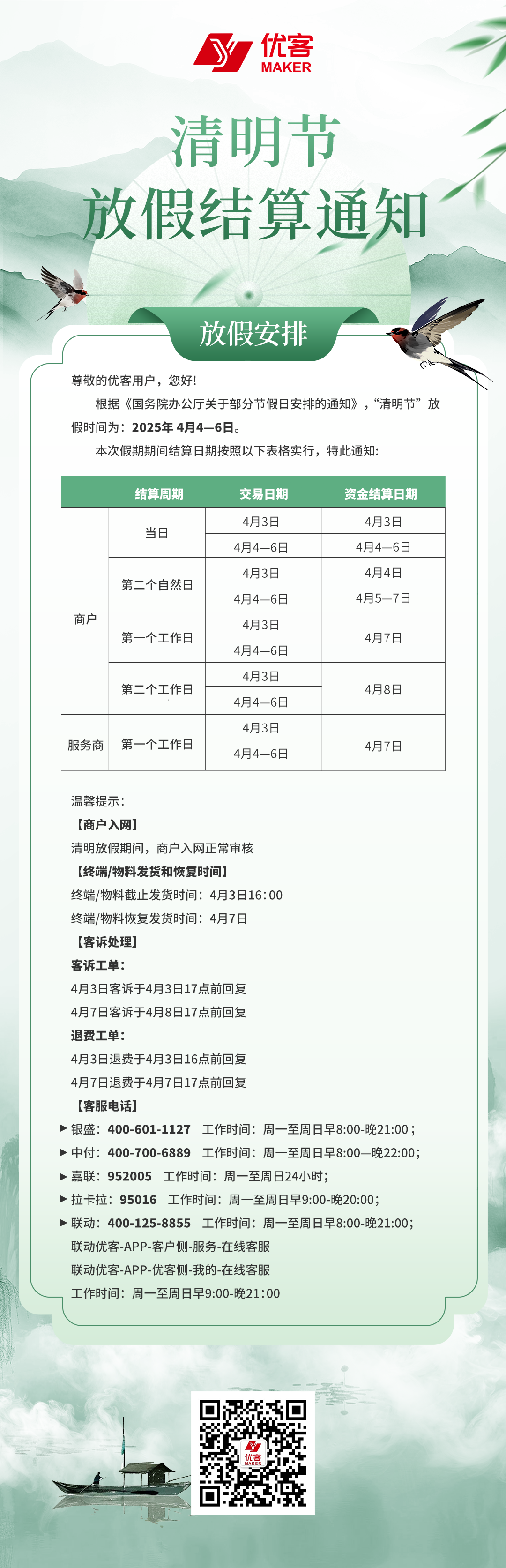 优客清明假期结算通知