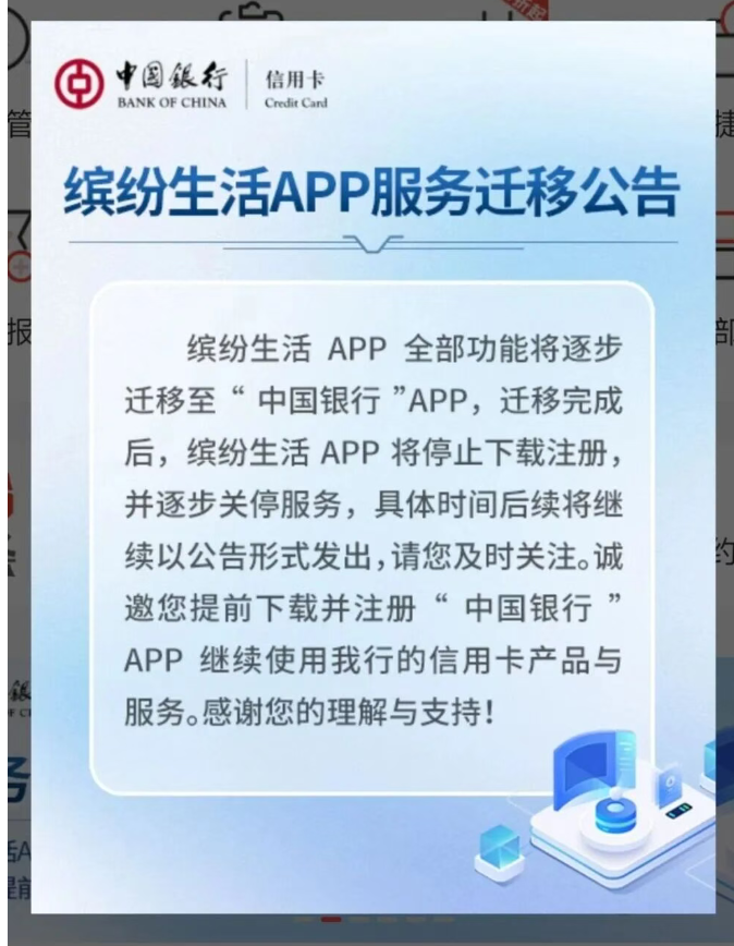 中国银行正式宣布关停"缤纷生活"信用卡App。